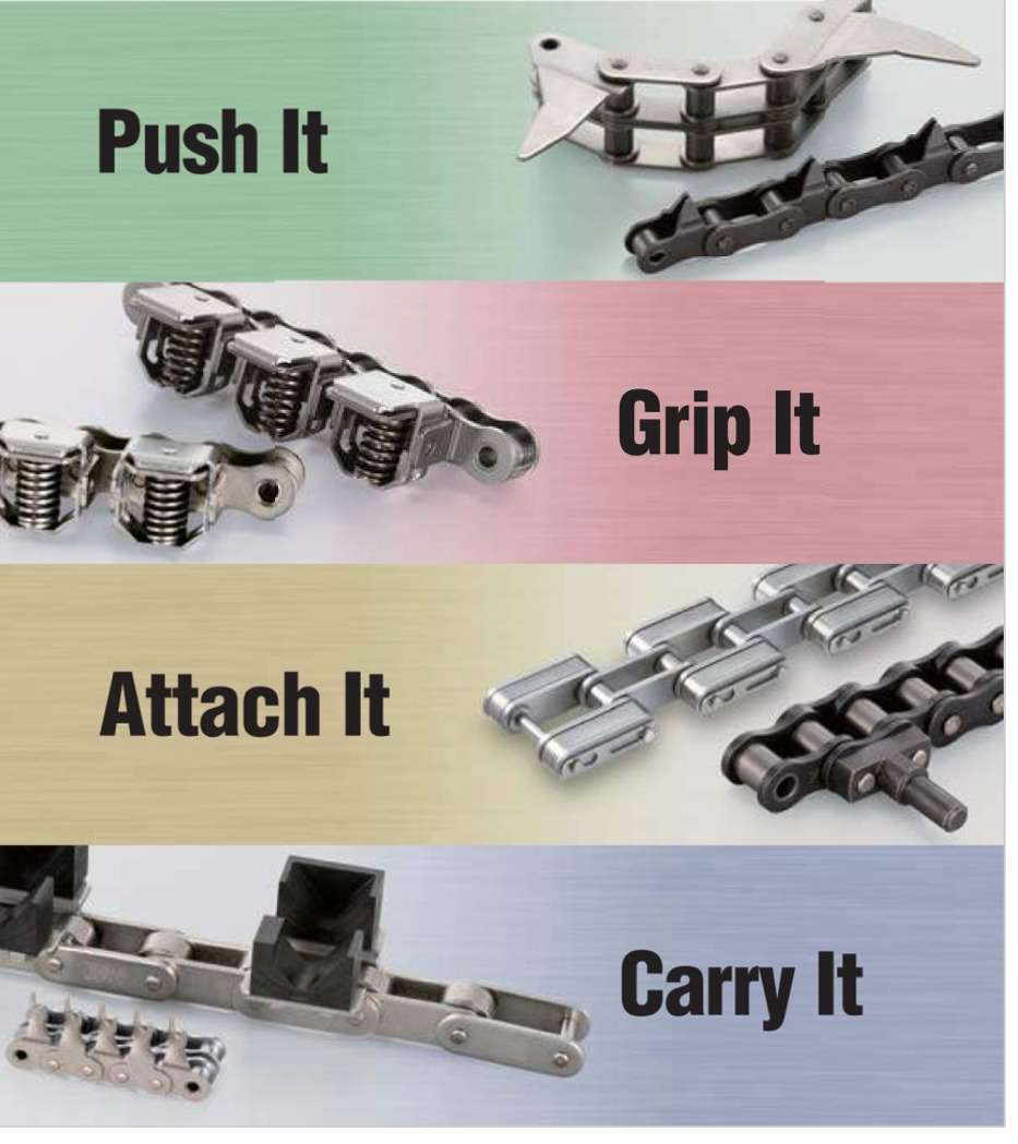 Đây là loại xích gắn được sử dụng phổ biến nhất và được sử dụng rộng rãi trong các ngành công nghiệp phụ tùng ô tô, điện, điện tử và máy móc chính xác.Với thiết kế linh hoạt, sản phẩm phù hợp để sử dụng trong các băng tải công nghiệp, dây chuyền sản xuất, và các hệ thống vận chuyển yêu cầu độ bền và hiệu suất cao.