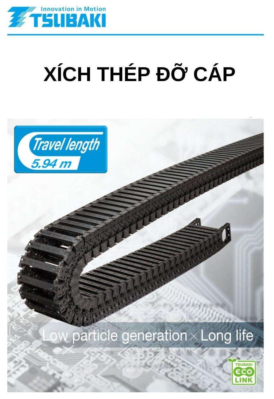 Xích thép đỡ cáp có độ bền, độ cứng cao và khả năng chịu nhiệt tốt, phù hợp cho các ứng dụng tải trọng nặng và quãng đường di chuyển dài. Với thiết kế thép và nhôm, nhiều phiên bản đặc biệt như thép không gỉ, và tuân thủ RoHS, sản phẩm đáp ứng đa dạng nhu cầu công nghiệp.